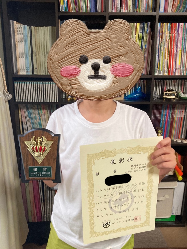 三次市民ホールきりりにおいて、ベーテン音楽コンクール地区予選が開催され、教室からK.Cくん(小5)が初挑戦しました。去年から、たくさんのコンクールに挑戦し続けているCくん。少しづつ力をつけてきました。課題曲コースに挑戦しましたが、見事銀賞🥈で次の本選に駒を進めることができました。自分なりにできなかったことへの悔しさの気持ちを見せてくれたので、次回はきっと克服して頑張ってくれると先生は信じてます。結果だけでなく、これまでの過程、これからの目標、たくさんのことを身につけることができるのがコンクールです。どんどん成長していきましょうね。Cくん銀賞おめでとう!!